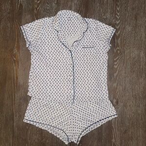 Roller Rabbit Original blue Hearts pattern Polo shorts Pajama set- size L