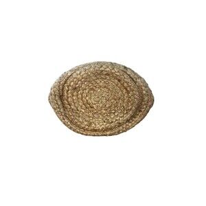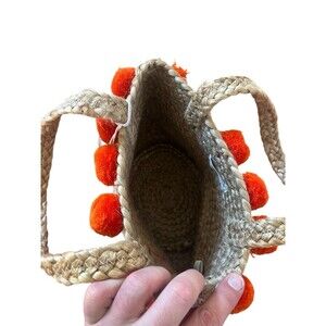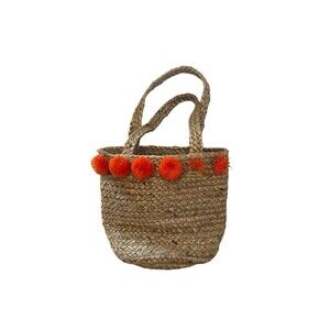 This Roberta Roller Rabbit Out of the Office Naila Tote is a charming addition to any wardrobe. The oval-shaped jute exterior is accented with a pom pom and top handle, making it a perfect choice for a bohemian or hippie-inspired outfit. The interior is lined with jute in a matching tan color and features enough space for all your essentials. This medium-sized tote is ideal for everyday use and is sure to turn heads with its unique design.