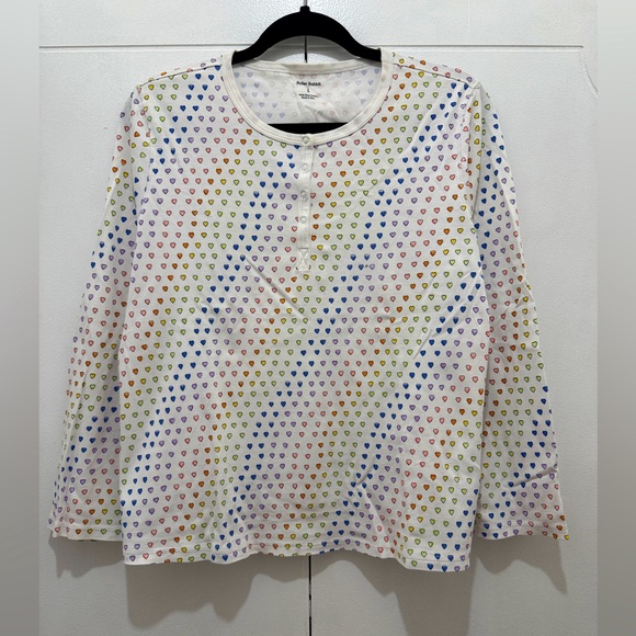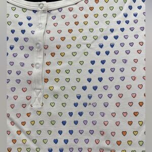 Roller Rabbit Henley PJ in disco hearts. Small sharpie mark near front placket (see photo)