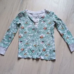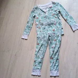 Adorable kids PJ set with a vibrant floral/animal /jungle design. Soft and comfortable for everyday wear.
