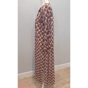 Roller Rabbit Paisley Print Caftan Dress Women’s S Pink Multi Side Slits Buttons