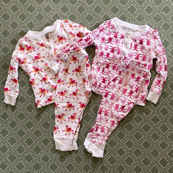 2 sets of roller rabbit pajamas top/bottom sets. Bears are missing a button as pictured.