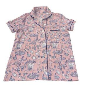 Roller Rabbit Party Toile Polo Pajama Top in Pink Size XS **TOP ONLY** Cotton