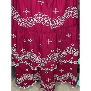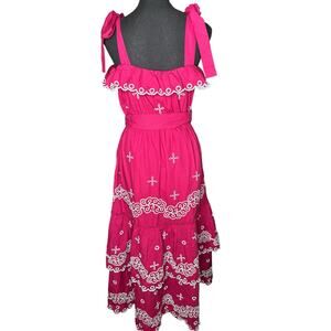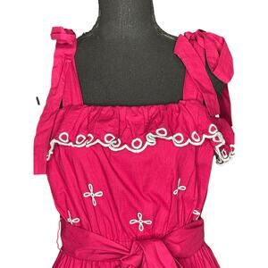 Roller Rabbit Peonia Embroidered Eleanor Dress In Red Tiered Tie Straps Cotton S
