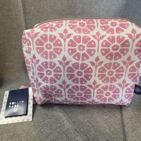 Stylish pink patterned pouch by Roller Rabbit. Ideal for organizing essentials.