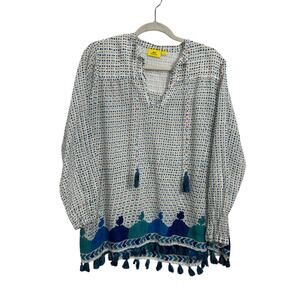 Roller Rabbit Polka Dot Peasant Blouse with Fringe Tassel Hem – Women’s Size Medium