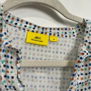 Roller Rabbit Polka Dot Peasant Blouse Fringe Tassel Hem Women's Size Medium