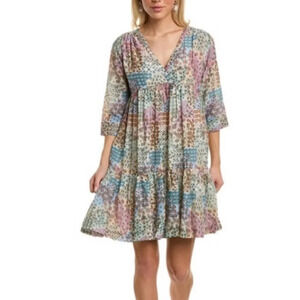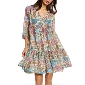 Roller Rabbit Primevere Donatella Floral Silk-Blend Mini Dress in Natural Sz XS