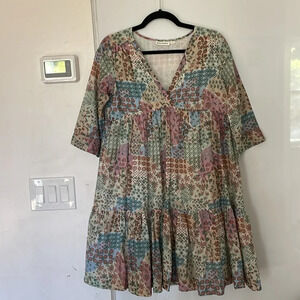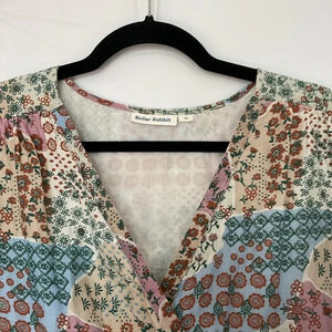 V-Neck Patchwork floral pattern 3/4-Length Sleeves