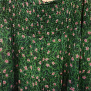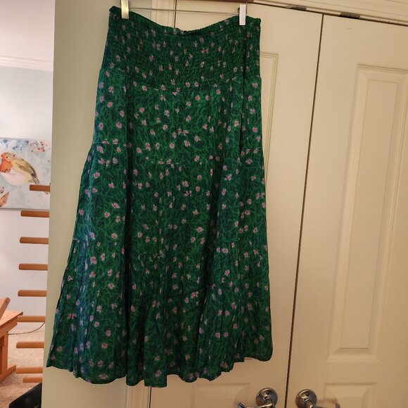 Never-worn Roller Rabbit Green/Multi Floral Pull-On Tiered Maxi Skirt. Size XL