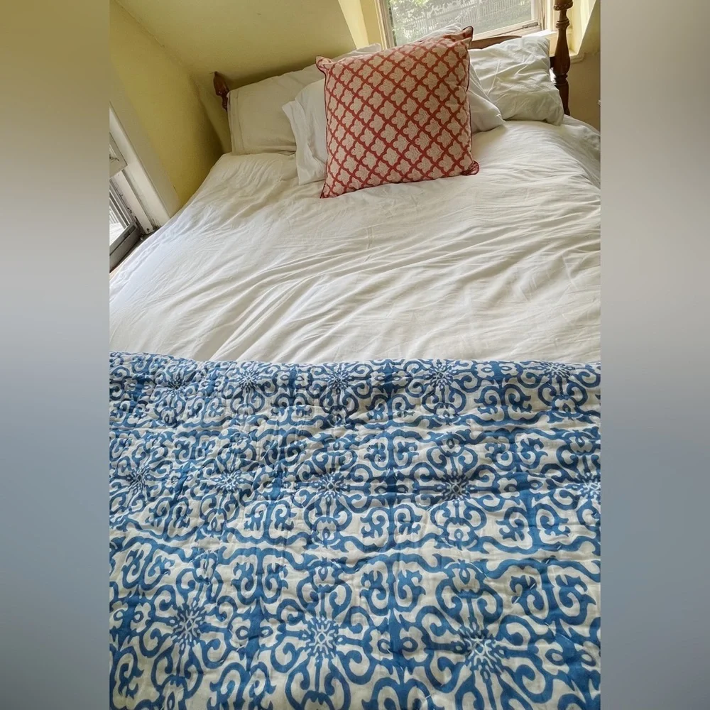 Roller Rabbit quilt in good condition, one small stain from markers but hardly noticeable (image 4). Blue and green color