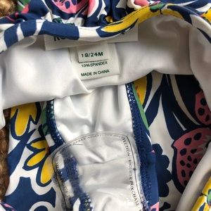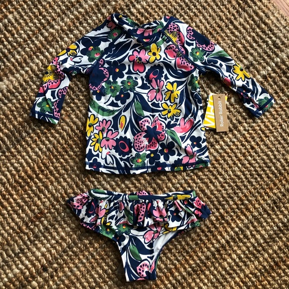 NWT RR rash guard and ruffle bikini bottom set. Adorable and soft, unfortunately too small by the time it was the right season. This is 18/24 but I’d say it runs a bit small. More like 9-12 (with a diaper).