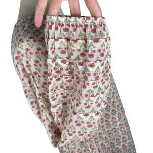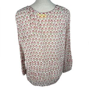 Roller Rabbit Red & Green Floral Tassel Tie Lightweight 3/4 Sleeve Boho Top
