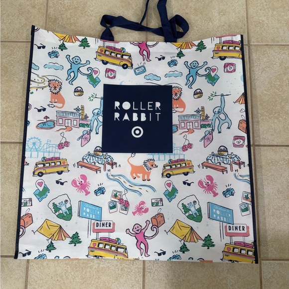 Charming tote with whimsical graphics. Features blue, pink, and yellow accents. Perfect for casual outings.