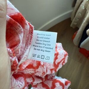Stylish tunic with a bold red and white pattern. Features a V-neck and 3/4 sleeves. Perfect for casual outings and beach styling!