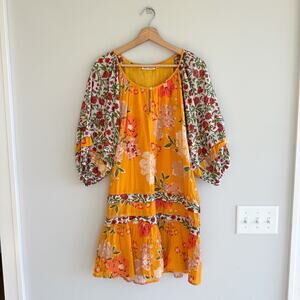 Roller Rabbit Semara Tamania Puff Sleeve Floral Mini Dress Yellow S