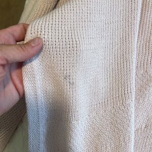 EUC. Couple pulls in threads that are easy to fix. The panel on back has small stain that cannot be seen from exterior. 100% cotton.