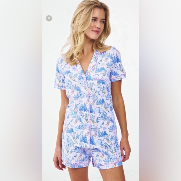 Unwind after a day on the slopes in the Ski Toile Polo Pajamas, our signature two-piece shortie set.
