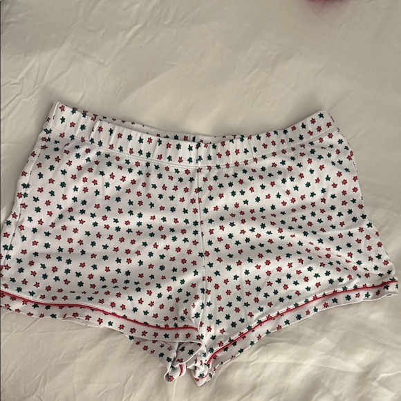 Charming white shorts featuring red and green star pattern. Perfect for casual wear.
