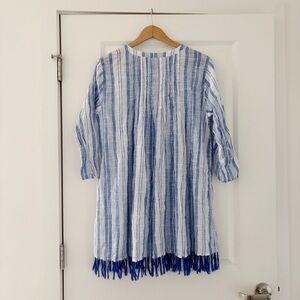 Roller Rabbit Striped Cotton Tunic Cover Up Fringe Mini Dress Coastal