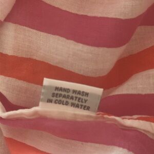 This relaxed tunic features vibrant stripes, a mandarin collar, and three-quarter length sleeves, offering a breezy and stylish look for any casual occasion. 100% Cotton. Pleats. Lightweight. Sleeves can be turned up-contrasting fabric on cuffs. Excellent preowned condition-there is some loose stitching on hem)see last 2 photos) but it is still hemmed.