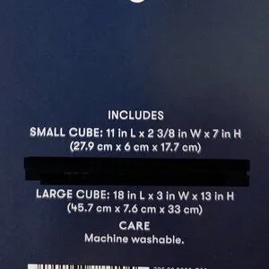 Large packing cube is 18" L x 3" W x 13" H