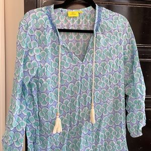 Brand new, embroidery around the neck, pockets, tassels, light cotton material