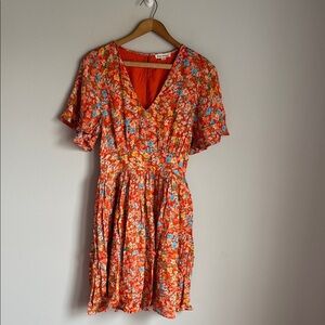 Roller Rabbit Vado Cecilia Dress Fit and Flare Orange Floral Small