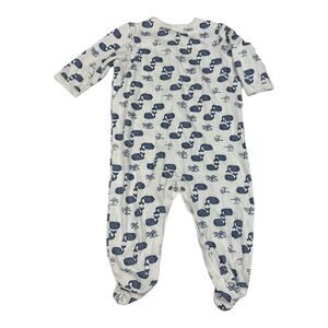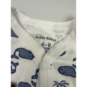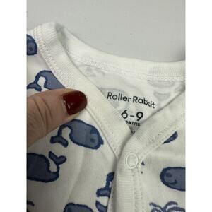 Adorable Roller Rabbit footed sleeper! This white sleeper features a charming blue whales print all over.