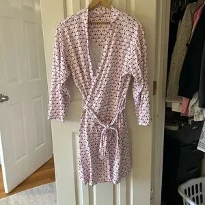 Chic and cozy robe with playful pink patterns. Ideal for relaxing at home.