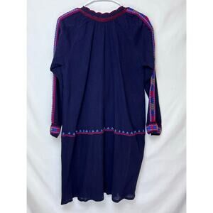 Roller Rabbit Women's Blue Embroidered Long Sleeve Boho Hippie Chic Dress - L
