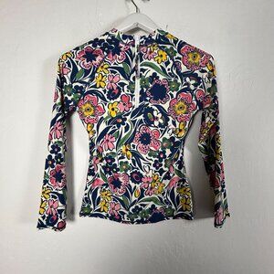 Roller Rabbit Womens Floral Long Sleeve Rash Guard Top Small Navy/Pink Stretch