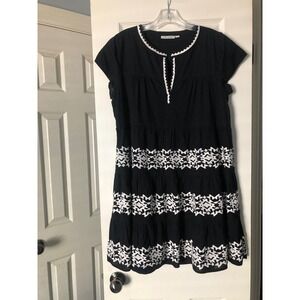Keywords: Roller Rabbit, dress, womens, black, white, embroidered, tiered, short sleeve, medium, M, bohemian, casual, summer, vacation, keyhole