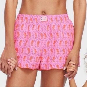 Lightweight sleep shorts with an elastic waist. All-over seahorse print for a playful look. Soft fabric for comfortable lounging.
