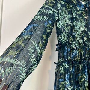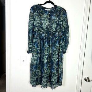 Roller Rabbit midi dress womens XS 100% Silk Sheer Floral Jungle Print Spring