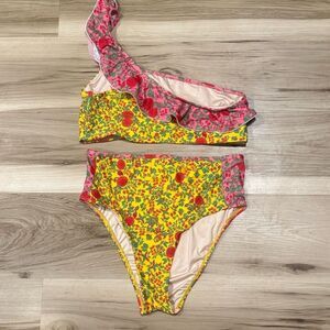 Roller Rabbit Rhody Floral Ruffle One Shoulder High Waisted Bikini Women’s M/L