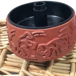 Roller Rubber Stamps Set of Three. One roller is a scene of animals. One roller is a Christmas scene. One roller is holly. All are in very good condition.