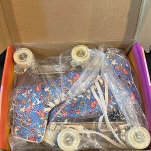 Skates used once but wrong size for us. Can fit men’s size 9 (not for wide feet) and woman’s size 11.