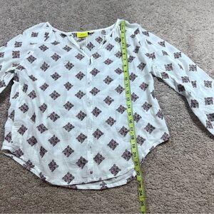 Roller Rabbit Embroidered Floral Peasant Blouse Top V Neck Size XS