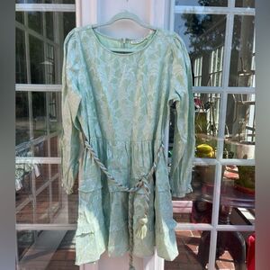 Stunning roller rabbit clermont nori dress. Never been worn, with tags attached. Detachable braided belt. Back zip. Beautiful metallic foiled material. 100% cotton. Lined.