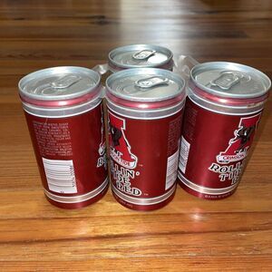 Four, vintage, empty 12 oz can's of Bama's Own Soft Drink, Crimson Tide Rollin' Tide Red. The 4 cans are still attached to the plastic 6-pack ring. The cans have been in storage for 30 years have some dings and corrosion as shown in photos. The cans are unopened but empty. A great gift for any Roll Tide fan for their office or man cave. Pre-owned.