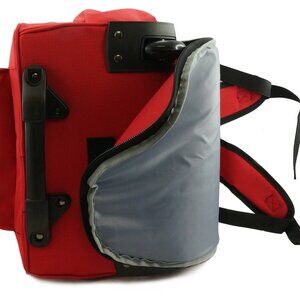 Deluxe Rolling Backpack with Large front pocket with Organizer. Sturdy padded fabric handle with metal D ring on each side for extra attachments