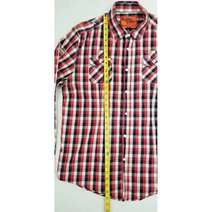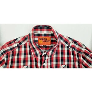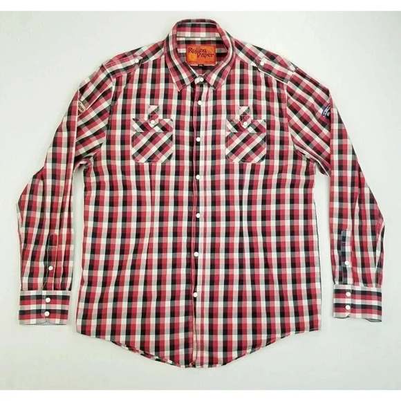 Rolling Paper 2XL Women's Pearl Snap Red White Black Check Sleeve Patch Shirt