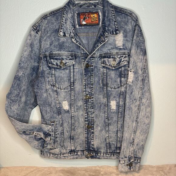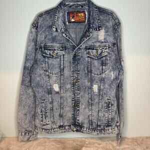 Rolling Paper Men's Acid Washed Distressed Jean Jacket Size Large