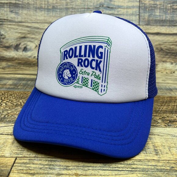 Rolling Rock Mens Trucker Hat Blue Snapback 1939 American Lager Beer Ball Cap