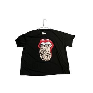 Rolling Stone T-Shirt Women L Black Crewneck Leopard Print Tongue Graphic Cotton.