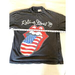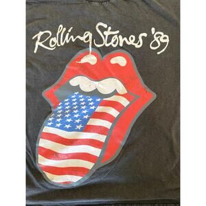 Rolling Stones ’89 Flag Tongue T-Shirt Small Distressed Black