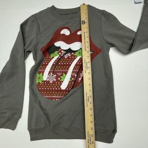 Rolling Stones Christmas Sweatshirt Tongue Long Sleeve Top Gray Red Women's XS