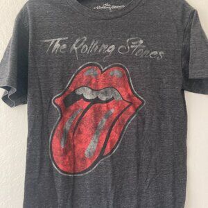 Rolling Stones Graphic T Shirt Red Lips Classic Concert Gray Cozy Lounge Small