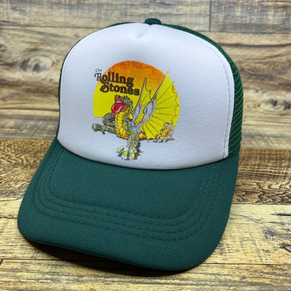 Rolling Stones Mens Trucker Hat Green Snapback World Tour Dragon 1978 Ball Cap